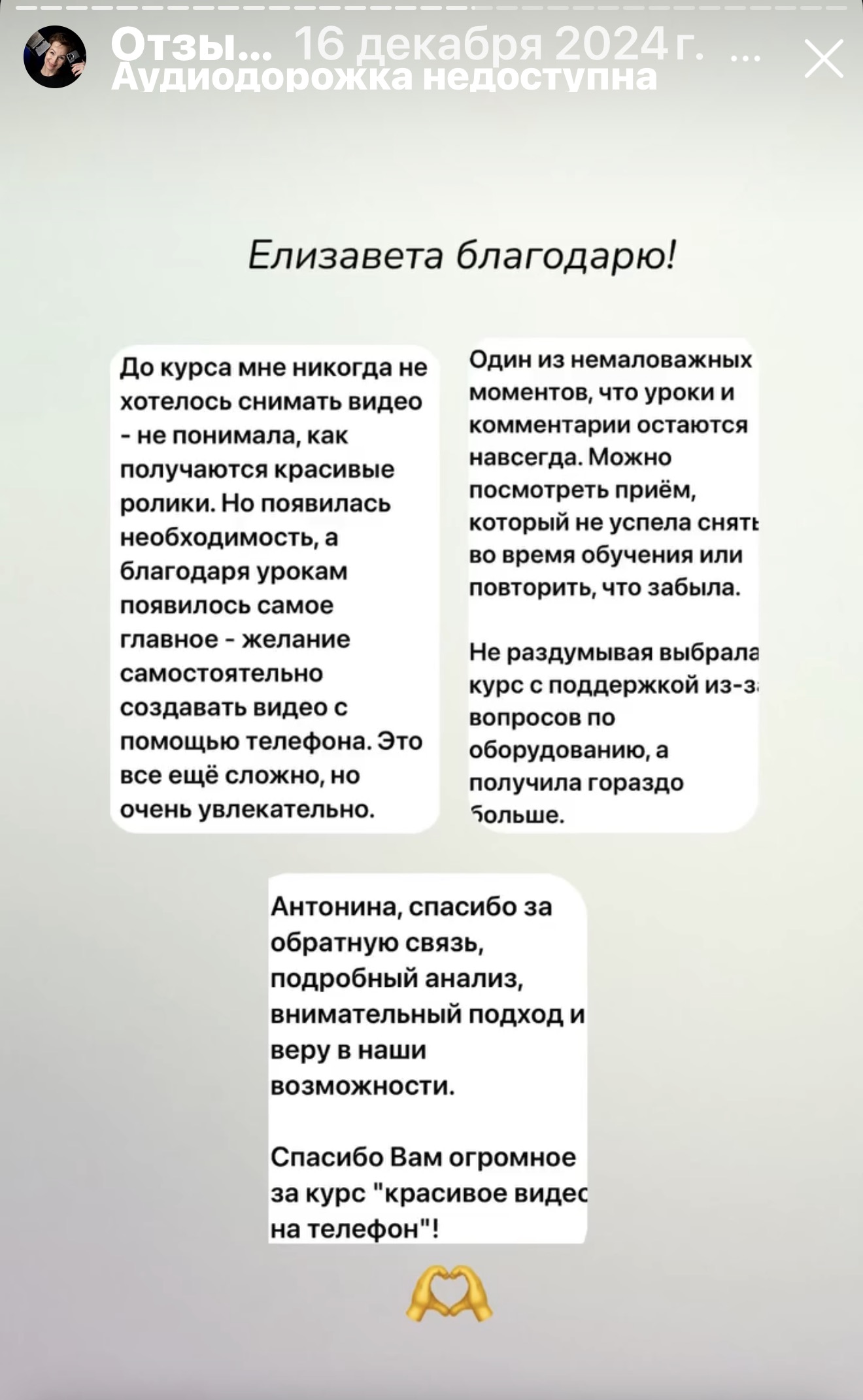 Научу снимать видео, которые реально цепляют, набирают просмотры и подписчиков. На любой телефон, без дорогого оборудования. Даже если никогда не снимал